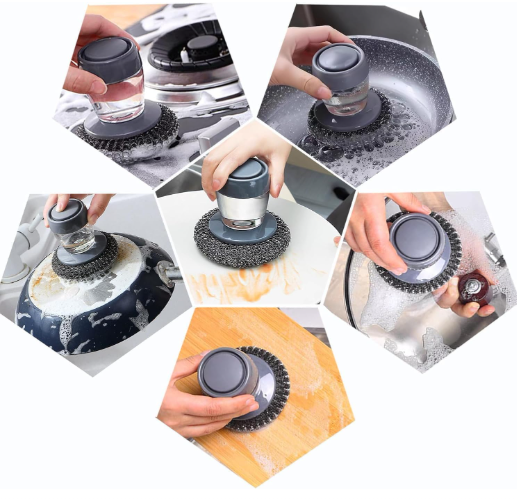 Upgrade your kitchen cleaning routine with the Kitchen Soap Dispensing Palm Brush (Pack of 2) — designed for quick, effortless and mess-free cleaning. Each brush comes with a built-in soap dispenser, ensuring constant foam for faster washing with less effort.